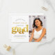 Achten Sie darauf, dass alle Ihre Freunde und Verwandten das Meilenstein-Ereignis Ihres Absolventen auch weiterhin feiern können, unabhängig von den aktuellen unvorhergesehenen globalen Umständen. Versenden Sie diese atemberaubende, einfache, moderne, personalisierte Foto-Postkarte "Planänderung" für eine Veranstaltung, an die Sie sich erinnern können. Fett, grafisch, Imitate Goldfolien Typografie überlagert einen weißen Hintergrund. Fügen Sie auf der rechten Seite ein Foto Ihrer Wahl hinzu. Personalisieren Sie den benutzerdefinierten Text mit dem Namen, dem Unterrichtsjahr und den Daten Ihres Absolventen. Ihre individuelle Nachricht, ein Imitat Gold-Folie Graduierungs-Cap-Symbol und Ihre Rücksendeadresse schmücken die Rückseite. In dieser trendigen und stilvollen Kollektion sind auch Matching-Einladungen, Dankeschön-Karten, Cap Toppers, Servietten, Teller und andere Abschluss-Goodies erhältlich. Vergewissern Sie sich, dass ihre besondere Feier noch so festlich wie ursprünglich geplant ist! Geben Sie einfach den Namen, das Schuljahr und das Klassenjahr Ihres Abschlusses, Datums-Informationen, benutzerdefinierte Nachricht, fügen Sie ihr Foto ein, und Sie können diesen Abschluss "Änderung der Pläne" Ankündigung Postkarte leicht personalisieren. Bitte schicken Sie mir eine Nachricht mit Fragen oder Wünschen.