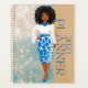 Dies ist ein afroamerikanischer Planer aus dem Jahr 2023 mit einer jazzigen Afrikanisch-Amerikanischen Jungfrau in blau-weiß gekleidet.