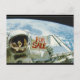 Astronaut, der ein Verkaufsschild außerhalb der Raumfähre besitzt