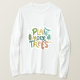 Ein lebendiger grüner Hintergrund mit dem Text "Pflanze Mehr Bäume" in fett gedruckten, farbigen Buchstaben. Eine einfache Kontur eines Baumes ist in der Ecke.
