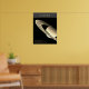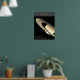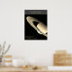 Planet Saturn mit Ringen und Fakten schwarzes Post Poster