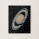 Eine schöne Aussicht auf den Saturn und seine Ringe, wie sie vom NASA Hubble Weltraumteleskop beobachtet wurde. Beachten Sie das Polarlicht am Südpol des Saturns. Ein Sternenhimmel-Hintergrund wurde hinzugefügt. Perfektes Geschenk für Astronomen, Studenten, Raumfahrer und alle, die sich für Wissenschaft, Astronomie oder Weltraum interessieren.