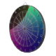 Dieses phantastische Dartboard zeichnet sich durch ein digital gestaltetes Bild aus, das dem Halbmond eines dunklen Planeten ähnelt, umgeben von einem kosmischen Polarlicht aus Grün, Blau, lila und Rosa.