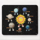 Farbige Illustrationen der acht Planeten und des Sonnensystems. Jeder Planet wird als Spaß und süße Figur dargestellt. Raumuniversum Design zeigt die Sonne in der Mitte und die Planeten Merkur, Venus, Mars, Jupiter, Saturn, Uranus und Neptun um sie herum. Ein niedliches Weltraum-Design für Kinder, Kinder, Kleinkinder, Weltraumliebhaber, Jungen und Mädchen. Diese astronomische Darstellung der Galaxie, der Sterne und der Planeten ist perfekt für ein Geburtstagsgeschenk, Kinderzimmer-Dekoration, Kinderzimmer-Kunst, Wohngestaltung, Weihnachtsgeschenk oder Geschenk für jeden anderen besondere Anlass.