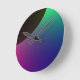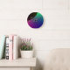 Diese phantastische Uhr zeigt ein digital gestaltetes Bild, das dem Halbmond eines dunklen Planeten ähnelt, umgeben von einem kosmischen Orora aus Grün, Blau, lila und Rosa.