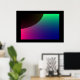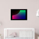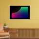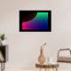 Dieses Poster zeigt ein digital gestaltetes Bild, das dem Halbmond eines dunklen Planeten ähnelt, umgeben von einem kosmischen Polarlicht aus Grün, Blau, lila und Rosa.