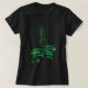 T - Shirt mit Blumenkunst, leuchtende grüne Tore und Blätter mit Plantain auf schwarzem Hintergrund. Pastellfarben in Grün und Schwarz, Sommergärten. © Clipso-Callipso / Julia Khoroshikh #greenerity #plantain #Wildblumen #herbs #summervibes #floralart #floral #botanical #grünes #grünes #schwarzandgreen #apparel #wearableart #thsirts #tshirt #womentshirt www.clipsocallipso.art