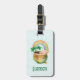 Ein Gepäckanhänger mit einer hübschen Abbildung mit einem lächelnden grünen und goldenen Topf mit einem niedlichen Regenbogen, einer glücklichen Wolke und einem grünen Klee.