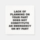 Für den Sarkasmusliebhaber in uns allen. Karo aus diesem witzigen "Mangel an Planung auf Ihrer Seite stellt keinen Notfall auf meinem Teil" Design auf Bekleidung, Tasse, Mousepads, Knöpfe, und andere einzigartige Geschenke.