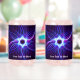 Ein wirbelndes blaues und lila Fraktal, das einen David-Stern darstellt, der auf die extrem heiße Natur der Materie im Augenblick der Schöpfung hinweist. Passen Sie Ihren eigenen Text an.