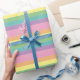 Pastel Regenbogen Streifen Packpapier für eine junge Mädchen Geburtstagsparty. Dieses schicke Design ist perfekt für ein Einhorn oder Prinzessin Party, kann aber auch für jedes Party eines Mädchens funktionieren. Es ist mühelos bezaubernd und bereit, Ihre Feier auf die nächste Stufe zu bringen.