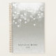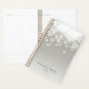 Der schicke Planer mit goldener Wirbelsäule zeichnet sich durch klassische schwarze Schriften auf silbergrauem Hintergrund aus, die oben mit einem Berst weißer Bügellampen geschmückt sind. Personalisieren Sie sich mit zwei Zeilen Text, sodass dieser Planer eine perfekte Wahl für Unternehmen, Termine oder tägliche Aufgaben ist.