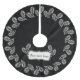 Ein Digitalbcon Bilder entwerfen die Aufmachung einer Kreisanordnung für Platinsilberstechpalmenblatt- und -beerenbilder in diesem einzigartigen "Platin-silberne Stechpalmen-" Baum-Rock. Dieser elegante und moderne Entwurf kommt komplett mit einem zusammenpassenden silbernen Umbau des Platins mit kundengerechter Textbeschriftung und die veränderbare Hintergrundfarbe, zum dieses zu machen Ihr besitzen sehr Baumrock.