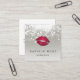 Elegantes und einfaches Design in einem einzigartigen quadratischen Format mit klassischer schwarzer Schrift auf einem silbergrauen Hintergrund, der mit einem weißen Lichterkuss an der Oberseite und einem lebhaften Pink-Lippenprint-Kuss geschmückt ist. Personalisieren Sie die Vorderseite mit Ihrem Namen und Geschäftsnamen oder Beruf, und fügen Sie Ihre vollständigen Kontaktinformationen, einschließlich Stunden, falls zutreffend, auf der Rückseite ein. Eine schöne Wahl für Ästhetiker, Make-up-Künstler oder jede Schönheitsindustrie beruflich.