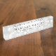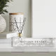 Die elegante Schreibtischmarke mit ihrem silbergrauen Hintergrund und der von oben kaskadierende, weiße Bügel-Lichter verleiht dem Raum eine elegante Note. Personalisieren Sie Ihren Namen, Titel oder Firmennamen in klassischer schwarzer Schrift.