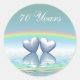Sticker mit meinem originalen Kunstwerk von zwei Platinherzen, die unter einem Regenbogen auf dem Wasser schwimmen. Im Text steht "70 Jahre".