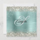 Platinum Glitzer Pale Turquoise Foil Monogramm Einladung
