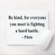 " Seien Sie nett, denn jeder, das Sie sich treffen, kämpft einen harten Kampf." - Plato