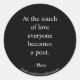 Plato Zitat; die Touch der Liebe rund Aufkleber. An der Touch der Liebe wird jeder zum Dichter. Plato | Griechisch: war Philosoph im klassischen Griechenland und Gründer der Akademie in Athen, der ersten Hochschule in der Western Welt. Er gilt weithin als die Schlüsselfigur in der Entwicklung der Philosophie, insbesondere der Western-Tradition. Es gibt so viel mehr über diesen phantastischen Mann auf der folgenden Wikipedia-Seite, wenn Sie mal einen Blick werfen möchten. https://en.wikipedia.org/wiki/Plato