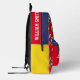 Fußball-Sport wiederholt personalisierte Fußball Tor-Muster Tasche. Weiße Fußball Platting als Scoring im Tor-Netz mit Ihrem eigenen Namen auf einem hellroten Hintergrund Farbe, die bei Bedarf auf der Vorderseite und über dem oberen, können Sie Ihren Namen, Team und oder Klasse. Ideal für junge Fußball- oder Fußball-Fans, die ein Team in Rot, Gelb, Blau und Weiß unterstützen oder unterstützen. Anpassen mit Ihrer eigenen Wahl des Namens, derzeit liest William. Kunst und Design von Sarah Trett für www.mylittleeden.com