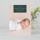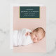 Die schicke und moderne Geburtsankündigung beinhaltet ein Single-Foto, das mit einem vertikal/porträtorientierten, rechteckigen Banner an der Spitze versehen ist und den Namen des Babys, das Geburtsdatum und die Geburtsdaten trägt und mit Goldfolie bestickt ist. Fügen Sie der Rückseite eine persönliche Nachricht und ein zusätzliches Foto hinzu.