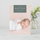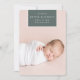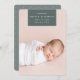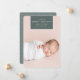 Die schicke und moderne Geburtsankündigung beinhaltet ein Single-Foto, das auf vertikalem/porträtorientiertem mit rechteckigem Banner oben ausgerichtet ist und den Namen, das Geburtsdatum und die Geburtsdaten des Babys trägt. Fügen Sie der Rückseite eine persönliche Nachricht und ein zusätzliches Foto hinzu.