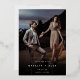 Ein schlichtes und elegantes Save the Date-Design für moderne Paare mit einem senkrechten Foto, das ganz unten schwarz erscheint. Ein geometrisches Element aus einer Rose mit Goldfolie trägt Ihre Namen, das Hochzeitdatum und den Standort in schicken Sans Serif und kursiv Schrift. Fügen Sie der Rückseite weitere Details hinzu.