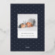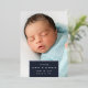 Die schicke und moderne Geburtsankündigung beinhaltet ein Single-Foto, das vertikal/portrait ausgerichtet ist und ein rechteckiges Bannerelement am unteren Rand aufweist. Es trägt den Namen des Babys, das Geburtsdatum und die Geburtsdaten und ist mit Silberfolie bespannt. Fügen Sie der Rückseite eine persönliche Nachricht und ein zusätzliches Foto hinzu.