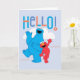 Dieses niedliche Sesam-StraßenAusrüstungsbeschreibungen Elmo und Plätzchen-Monsterwellenartig bewegen und -Sprichwort hallo!