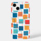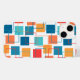 Dieses Gehäuse hat eine geometrische Gestaltung von Quadraten in Mandarine, Mohn, Korallen und Schattierungen von aquamarinen verstreut mit ihren Konturen.