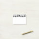 Dieses Post-It-Notizblock hat ein geometrisches Design von Quadraten in schwarz und Grautönen in ihren Konturen verstreut.
