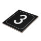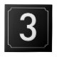 Schmale weiße Grenze mit umgekehrten Kreisfilets an den Ecken. Dunkelblauer Hintergrund Keramik-Nummernfliesen. Sie passen sich die Nummern oder Buchstaben an, die Sie für Ihre Keramik-Fliesen oder Mosaik-Zeichen benötigen. Zahlenschilder für Wetterbeweise, Hausnummern