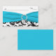 Diese schwarz-weiße Damast-Platzkarte verfügt über ein Aqua-Blau-DRUCKBAND und eine PRINTED-Diamantschlauchfibel, die perfekt für eine Hochzeit im Aqua- und Schwarz-Design geeignet ist.**HINWEIS, wenn Sie die Kartengröße ändern, die Schriftart ändern oder die Größe des Schriftartes ändern, kann ein Teil des Designs und/oder Textes abgeschnitten werden. Alles wird gedruckt, wie Sie es auf Ihrem Monitor sehen. Ich werde keine Änderungen sehen, die Sie vornehmen, und Zazzle wird nichts korrigieren (Tippfehler, falsche Ausrichtung usw.). Der Text ist alle anpassbar. Wenn Sie Hilfe zu diesem Produkt benötigen, schicken Sie mir bitte eine E-Mail, bevor Sie Ihre Bestellung aufgeben. Wenn Sie weitere passende Artikel benötigen, senden Sie Ihre Anfrage bitte an niteowlstudio@gmail.com