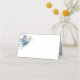 Diese gefaltete Platzkarte wird in weißem Grundweiß mit einem hübschen, blauen Hydrangea-Kunstdruck gezeigt. Passen Sie dieses Objekt an oder schreiben Sie einfach per Hand den Namen.
