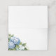 Diese gefaltete Platzkarte wird in weißem Grundweiß mit einem hübschen, blauen Hydrangea-Kunstdruck gezeigt. Passen Sie dieses Objekt an oder schreiben Sie einfach per Hand den Namen.