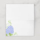Diese gefaltete Platzkarte wird in weißem Grundweiß mit einem hübschen, blauen Hydrangea-Kunstdruck gezeigt. Passen Sie dieses Objekt an oder schreiben Sie einfach per Hand den Namen.