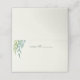 Eine schlichte Kaskade aus Grün und Blau, weiche Zweige beleuchten diese Elfenbeinleersitze-Platzkarte. Ein Leerzeichen, in dem jeder Gast seinen Namen und seine Tischbelegung angeben kann, macht es einem Gast leicht, seinen Platz zu finden. Elegante und leicht anpassbare Typografie ist schick und einfach mit viel Platz für die Aufnahme kalligraphischer Gastnamen.