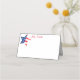 Diese gefaltete Platzkarte wird in Weiß mit einem festlichen Vierten Flag-Druck vom Juli gezeigt. Passen Sie dieses Objekt an oder kaufen Sie, wie es ist.