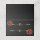 Diese gefaltete Platzkarte wird in einem schwarzen Hintergrund mit einer hübschen festlichen rote Rose und einem heiligen Druck dargestellt. Passen Sie dieses Objekt an oder schreiben Sie einfach per Hand den Namen.