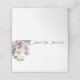 Diese gefaltete Platzkarte ist in Grundweiß mit einem hübschen Blumenmix-Akzent aus Lavendel und mit individuellen Namen zum Beispiel dargestellt. Passen Sie dieses Element an, und ändern Sie Namen und Datum so, wie Sie es mit dieser Vorlage benötigen.
