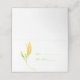 Ein Single gelb und grün Lily Stamm für einen Namen und Tischnummer Platz Inhaber. Weißer Text auf der gelben Farbe innerhalb der Seite.