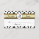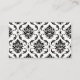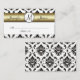 Hochzeitsempfehlung mit schwarz-weißem Damast-Muster, bedruckt mit dem Monogramm-Initial, die Braut- und Bräutigamen auf einer metallischen Goldlinie mit 3D-Schatteneffekt. Drucken Sie mit Ihren Namen und Monogramm und schreiben Sie dann Ihre Gastnamen und Tischnummern auf jeder Karte. Design von Elke Clarke© Graphics lizenziert.