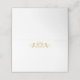 Diese gefaltete Platzkarte wird in Weiß gezeigt, mit einer goldenen Herzdruckkarte im eleganten Stil, die innen goldfarben ist. Passen Sie dieses Objekt an oder kaufen Sie, wie es ist.