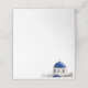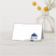 Eine einfache Platzkarte für Ihre Santorini-Hochzeit mit einer blauen Kuppel in Weiß