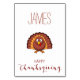 Personalisierte weiße zweiseitige Erntedank-Platzkarten (vertikal) mit Truthahn und anpassbarem Text.