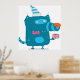 Playful Blue Cartoon Monster mit Party Hat Poster