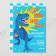 Playful blue dinosaur birthday einladung