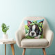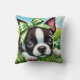 Playful Boston Terrier Puppy mit Green Bow Kissen