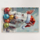 Playful Bull Terrier Dog Guarding Christmas Puzzle