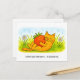 Playful Cartoon Cat Hugging Big Strawberry Postkarte